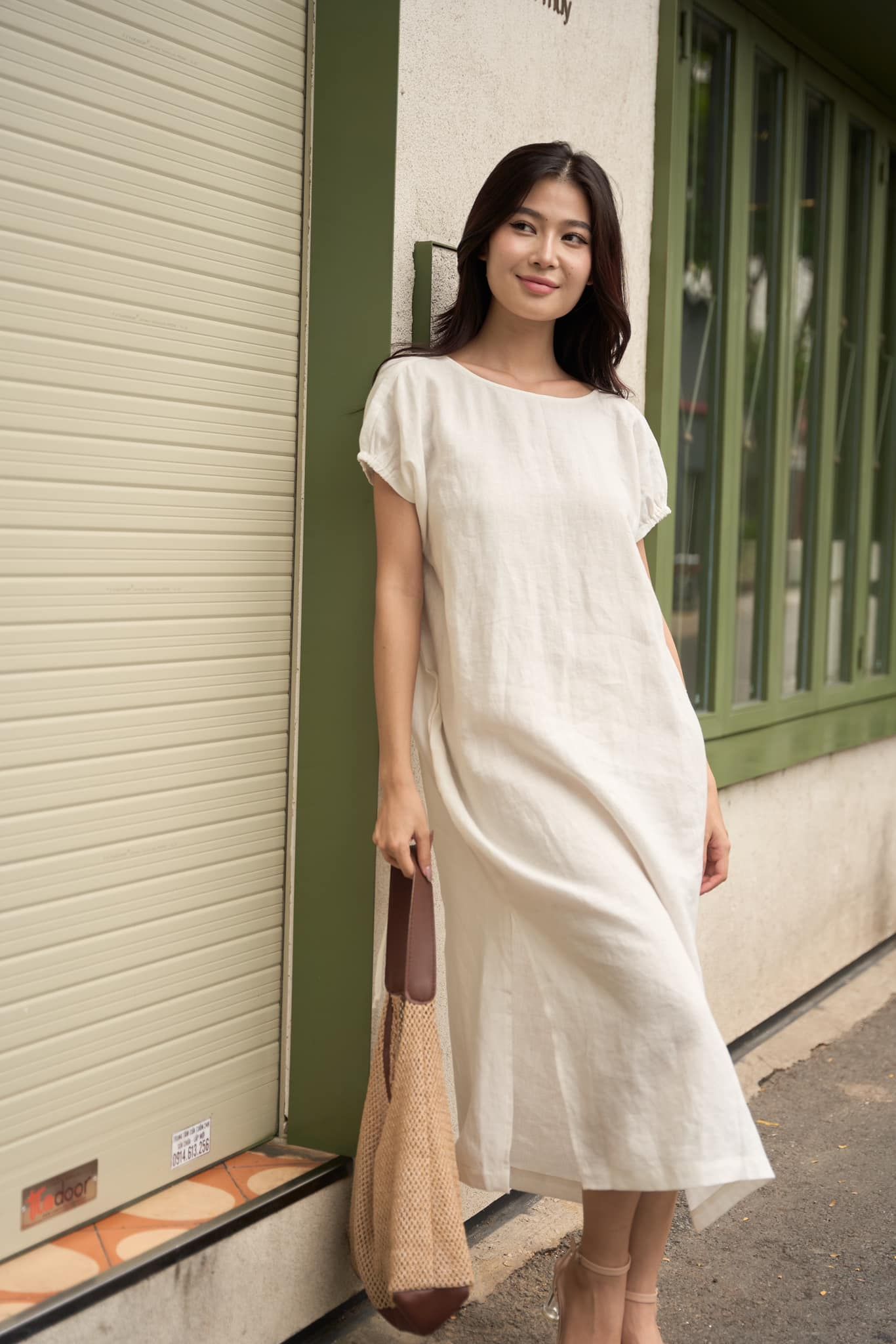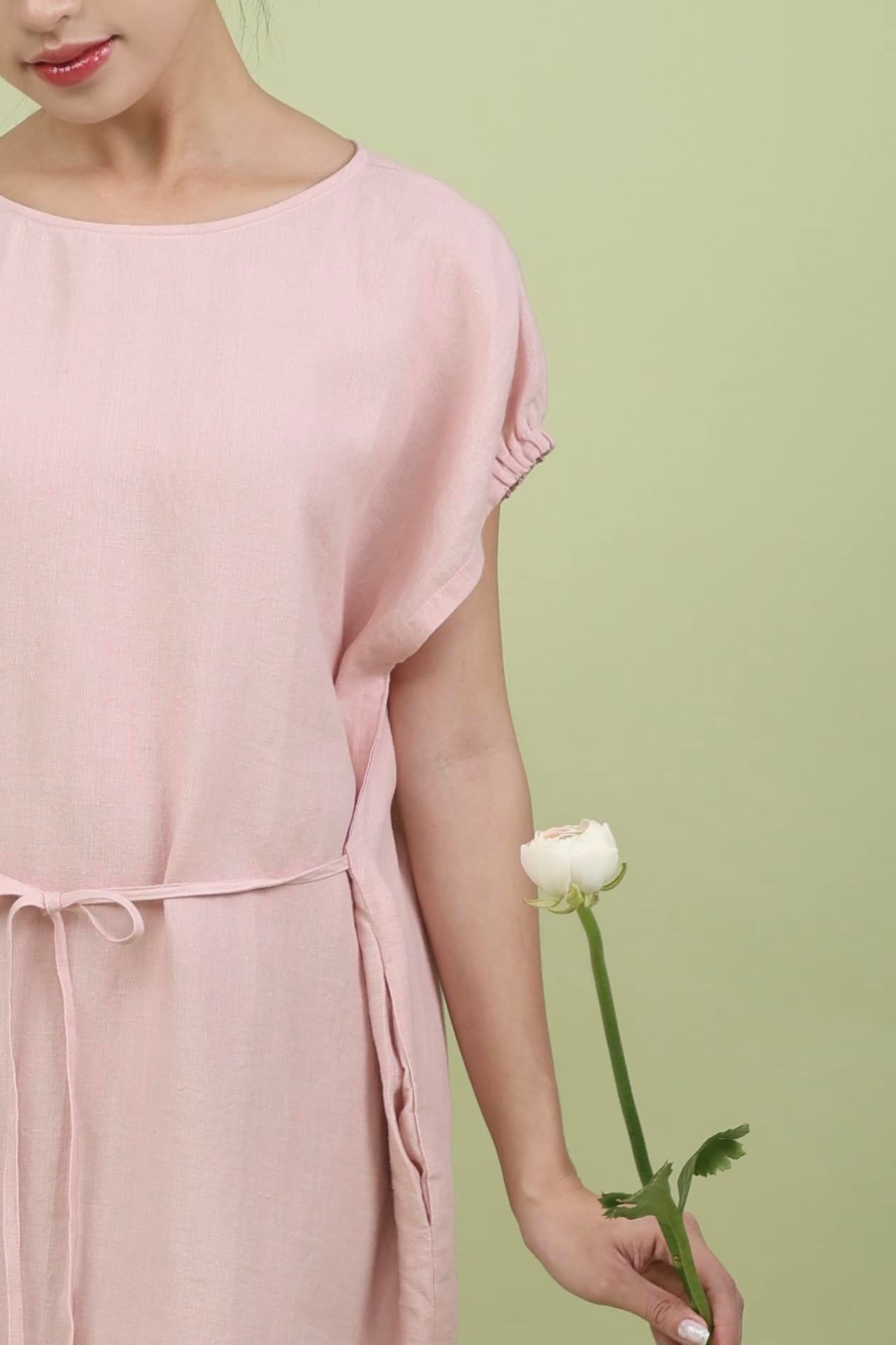 Minimalist style is incorporated into the design. The French linen material makes the dress even more valuable.