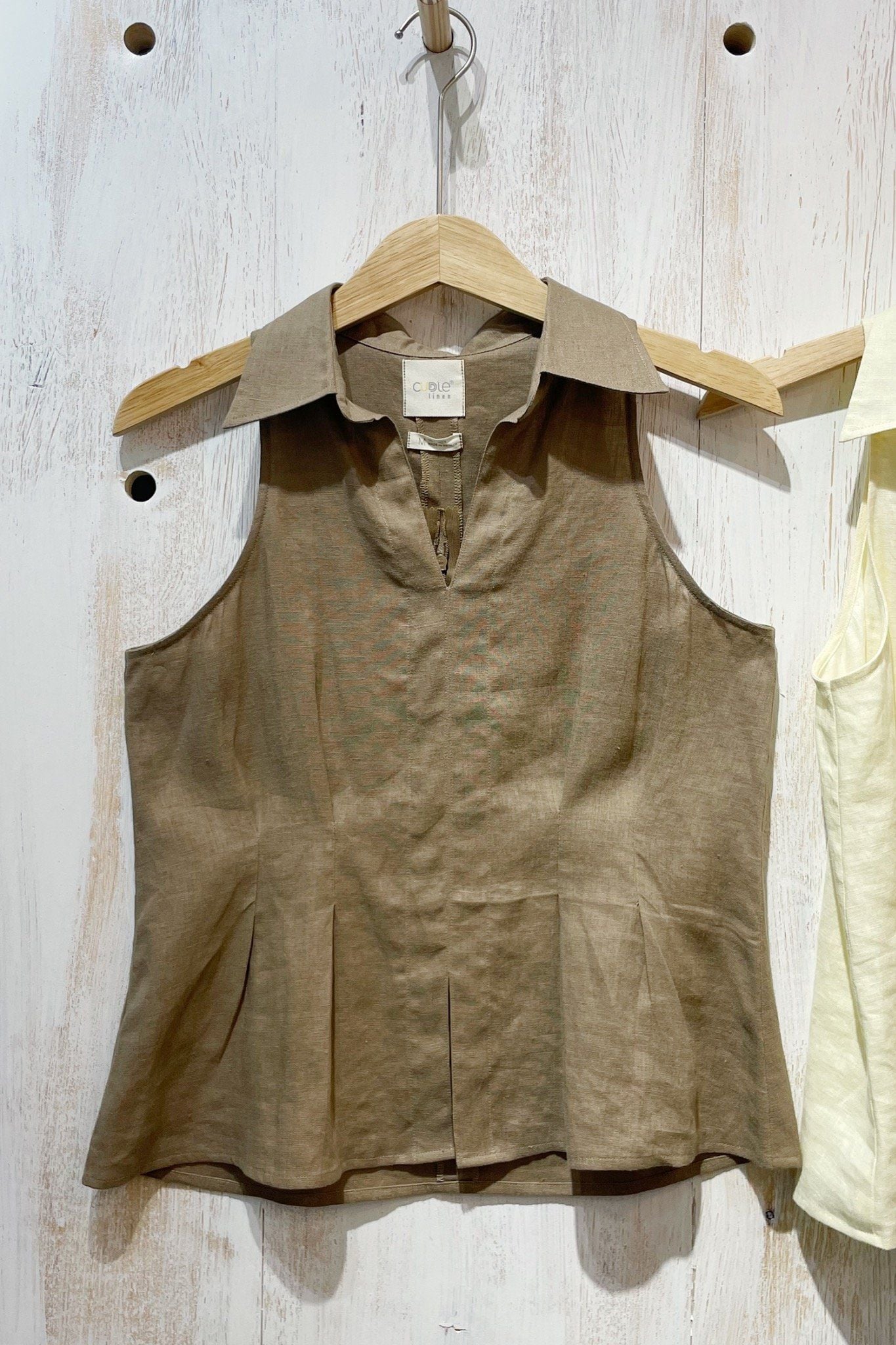 Pleats help to form beautiful waist but still maintain the leisurely, liberal feel of linen material.
