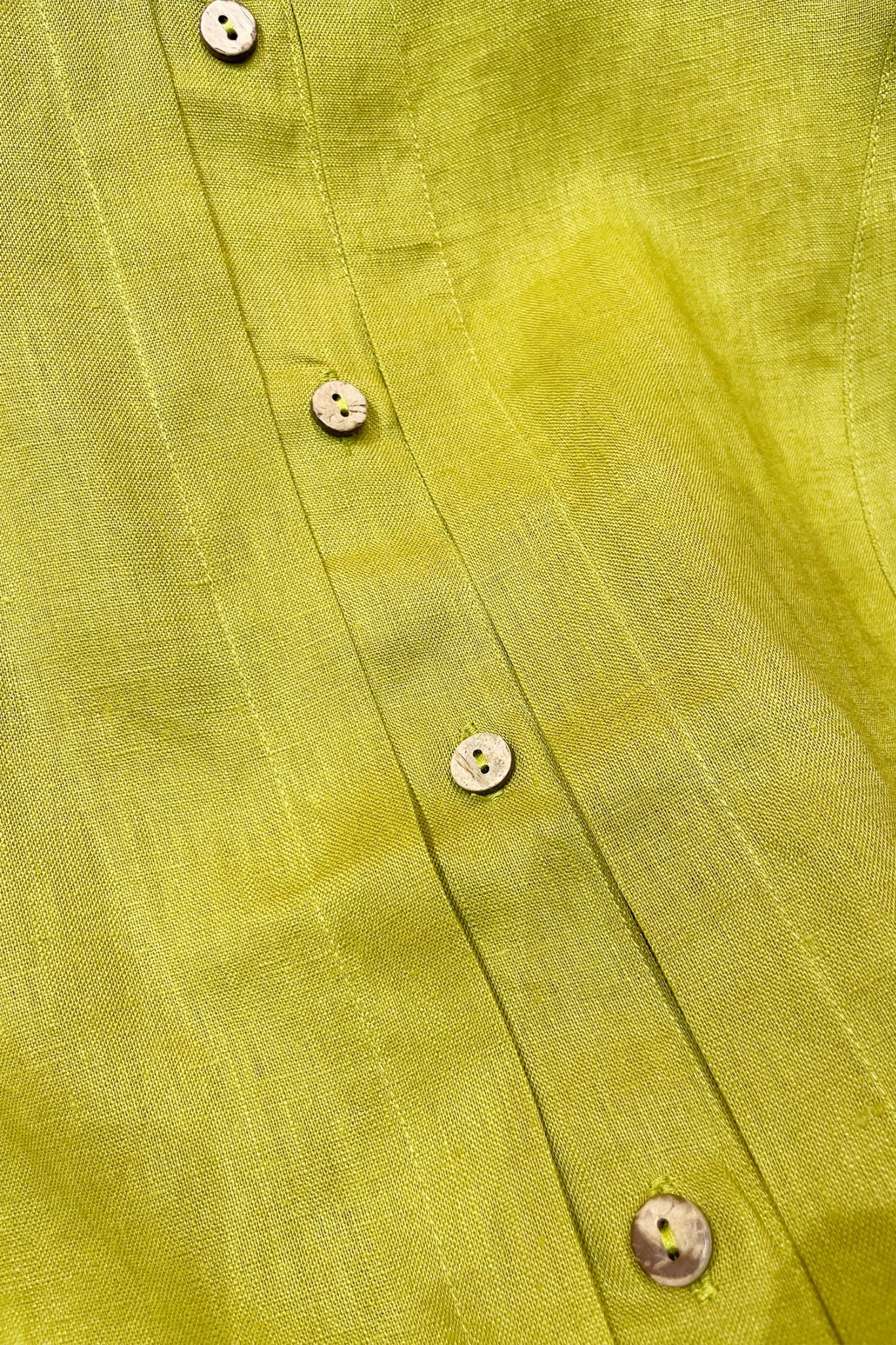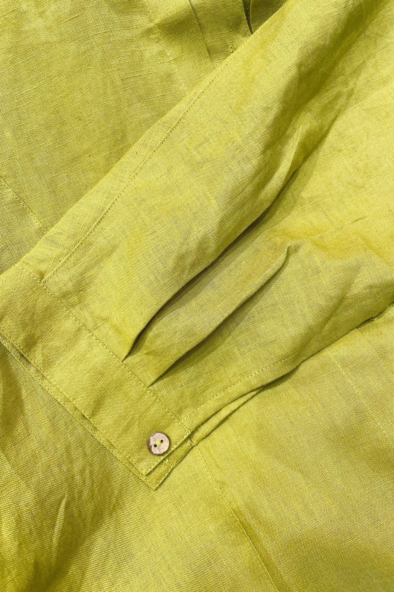 100% linen shirt with basic form, highlighted by the prominent pleat detail along the front.