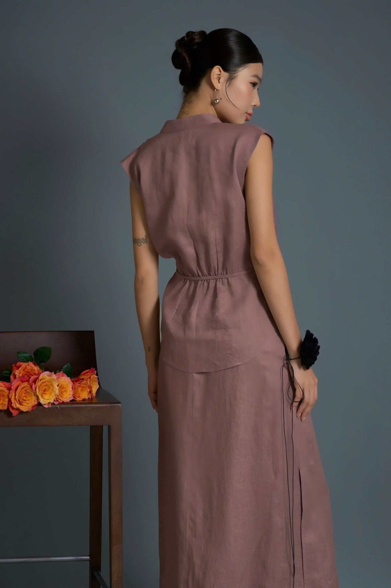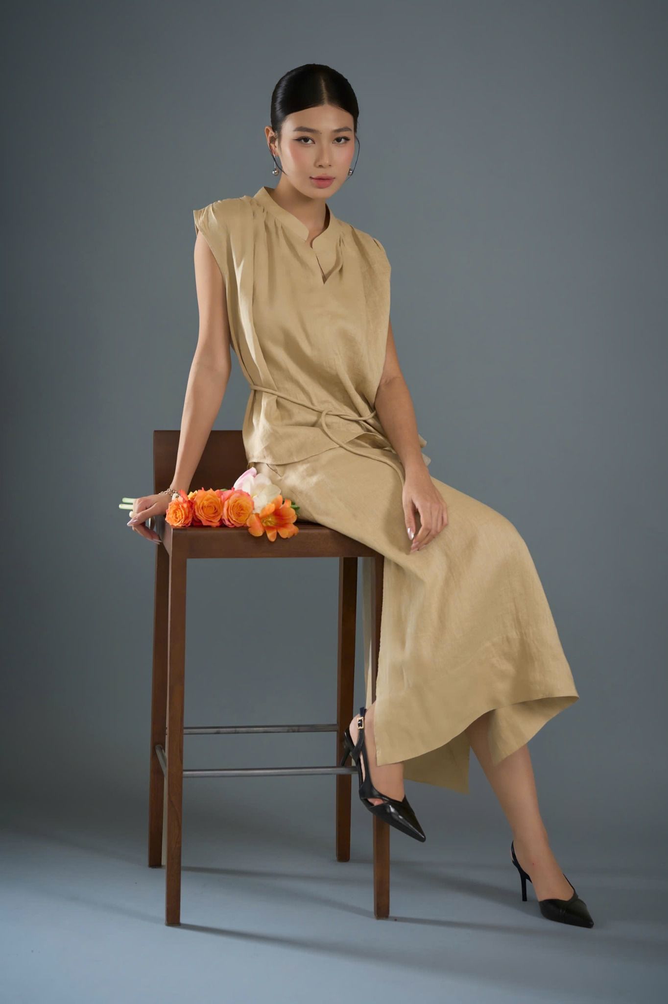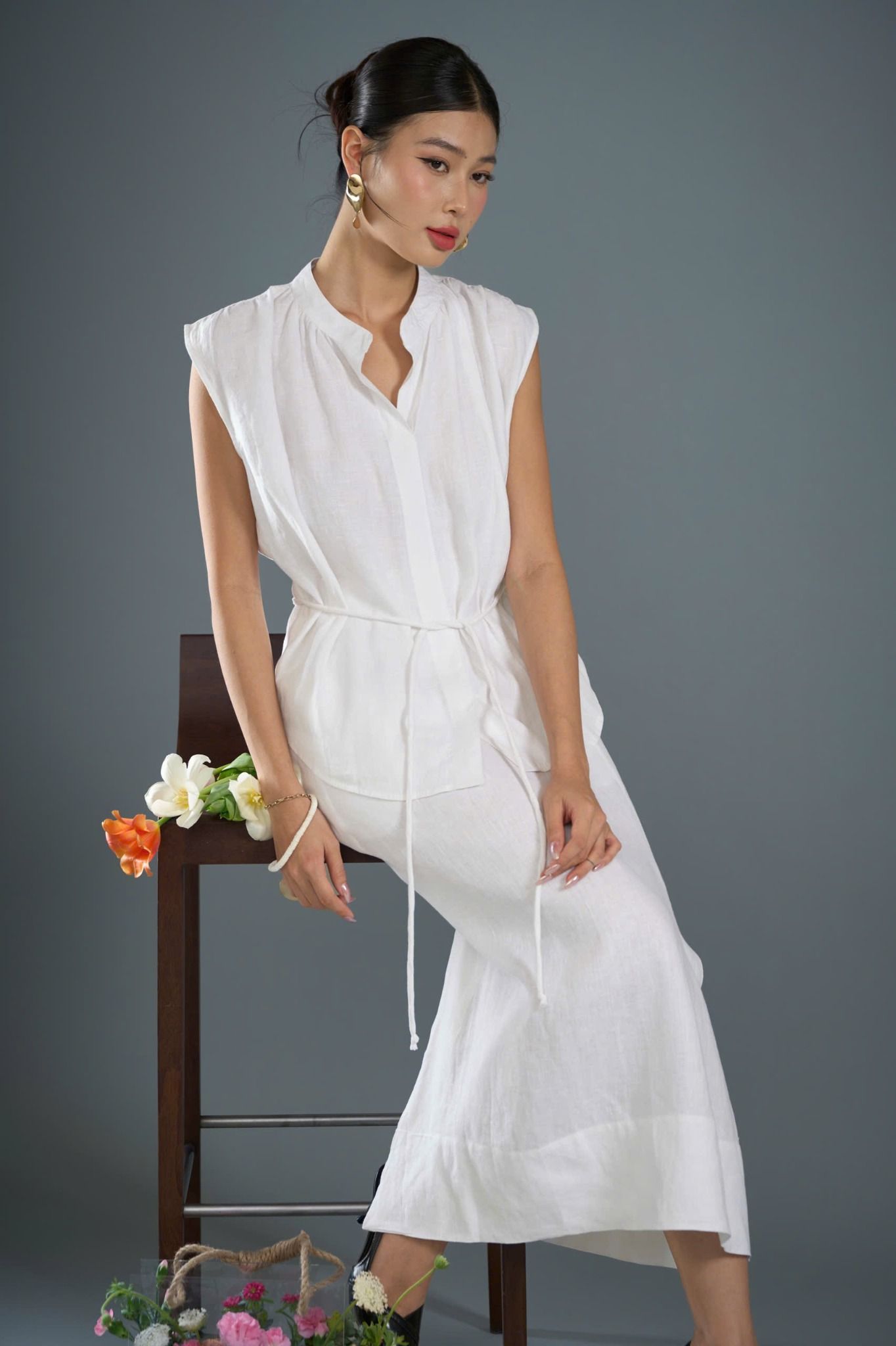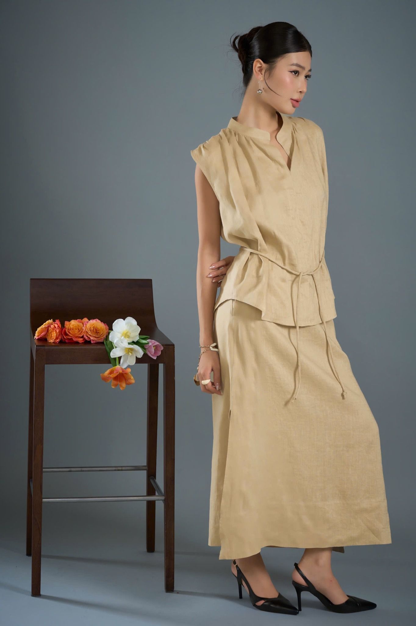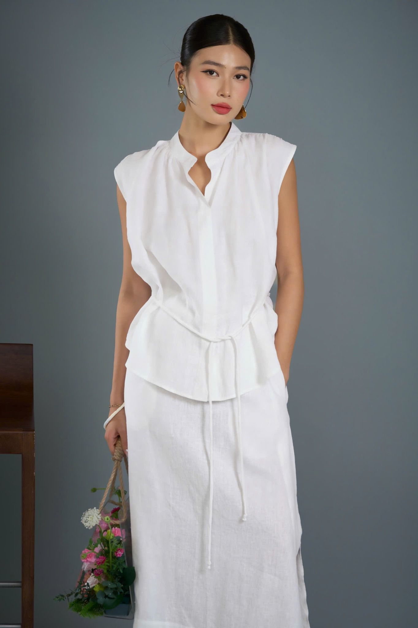 A latest design in the FLOWER SEASON COLLECTION - S/S 2025. A-line skirt with 7cm thick hem, the skirt hugs the hips lightly with a back zipper. The slits on both sides of the skirt help increase the flexibility and charm of your legs.